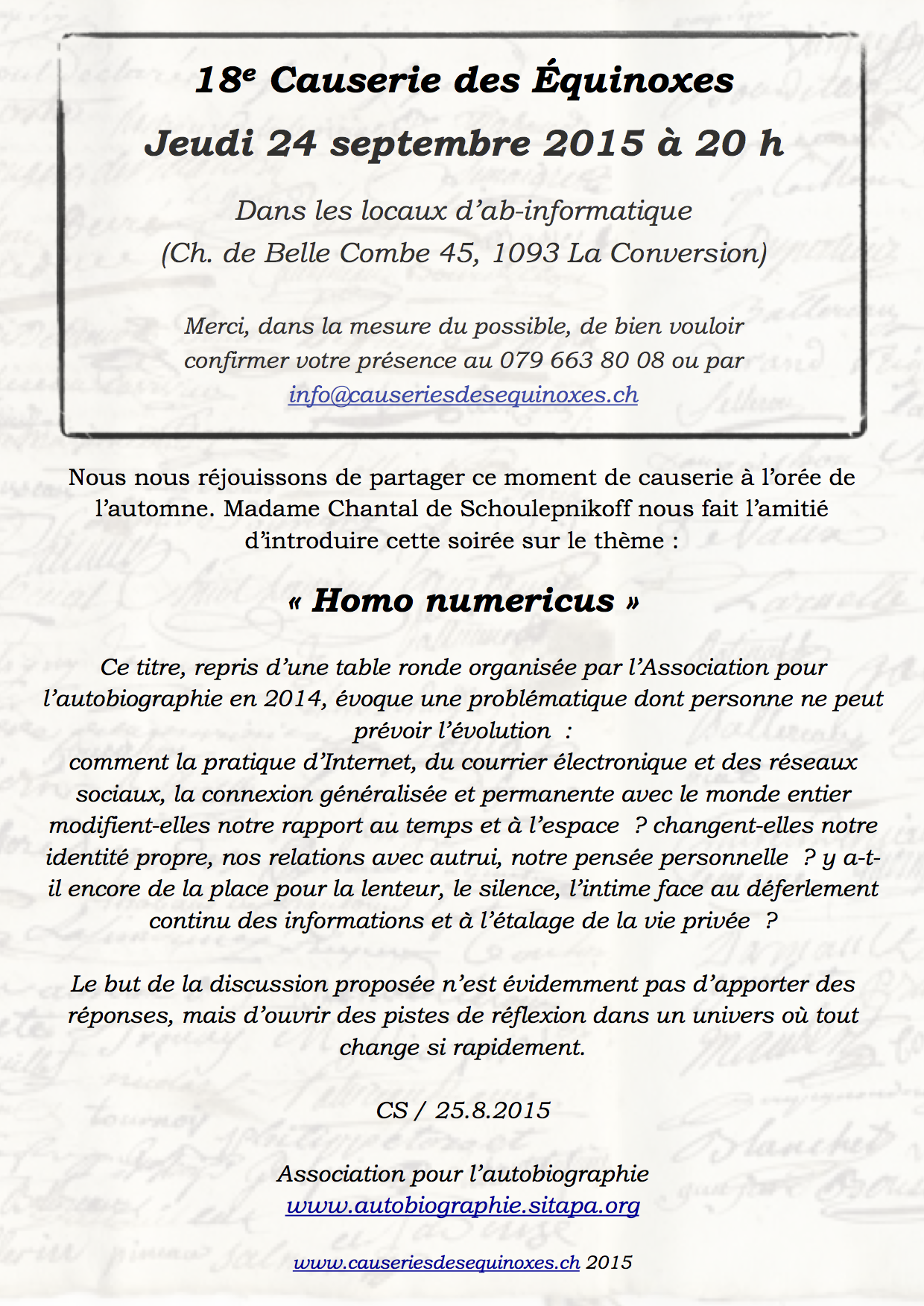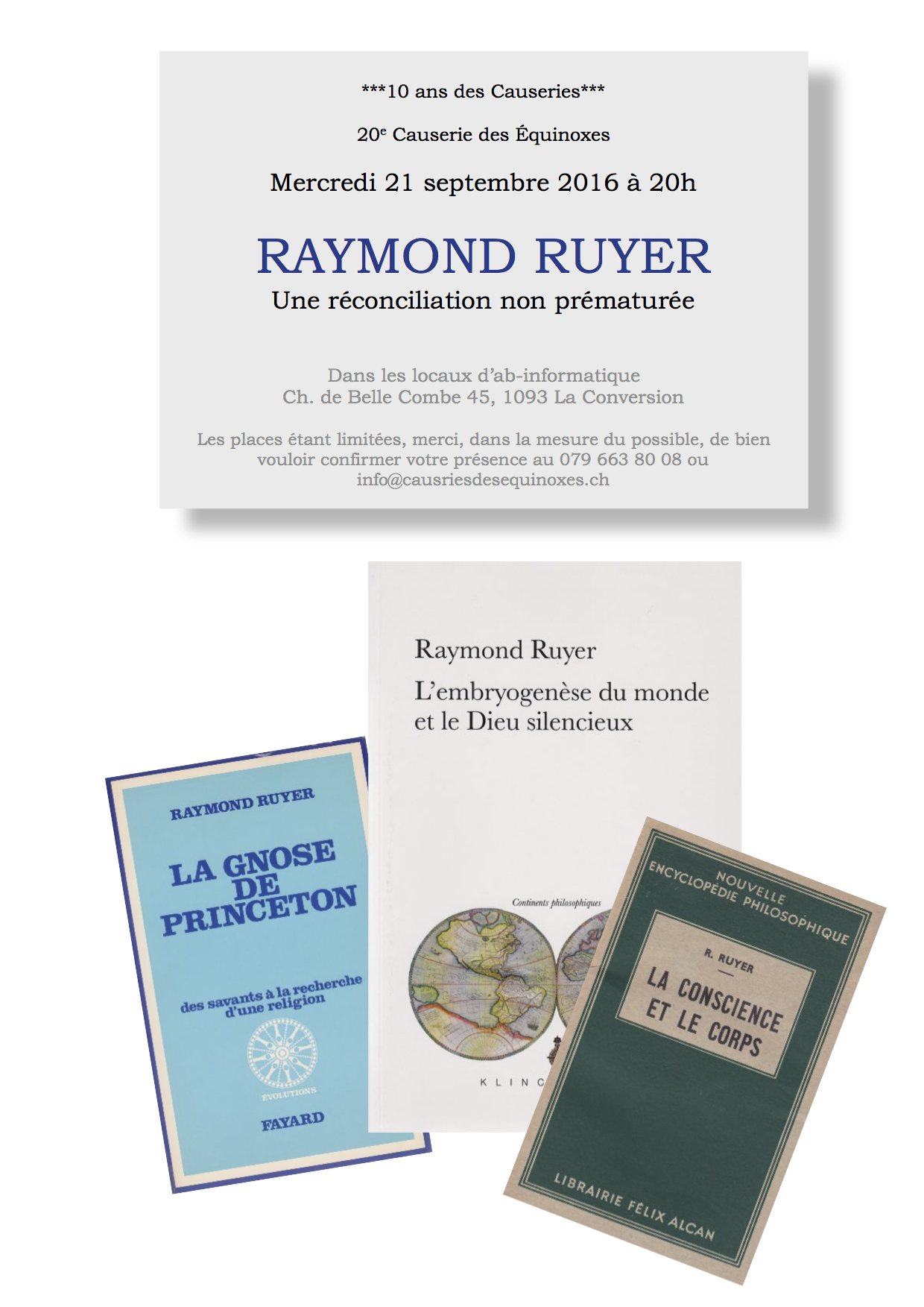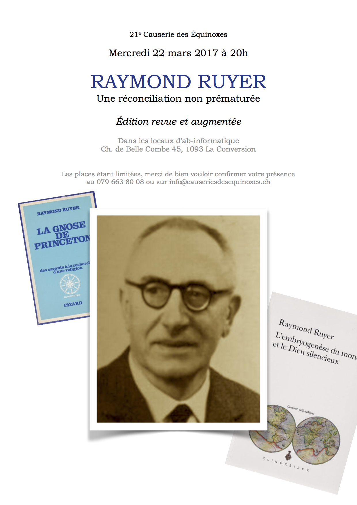 Merci, si possible, de confirmer votre présence (info@causeriesdesequinoxes.ch)